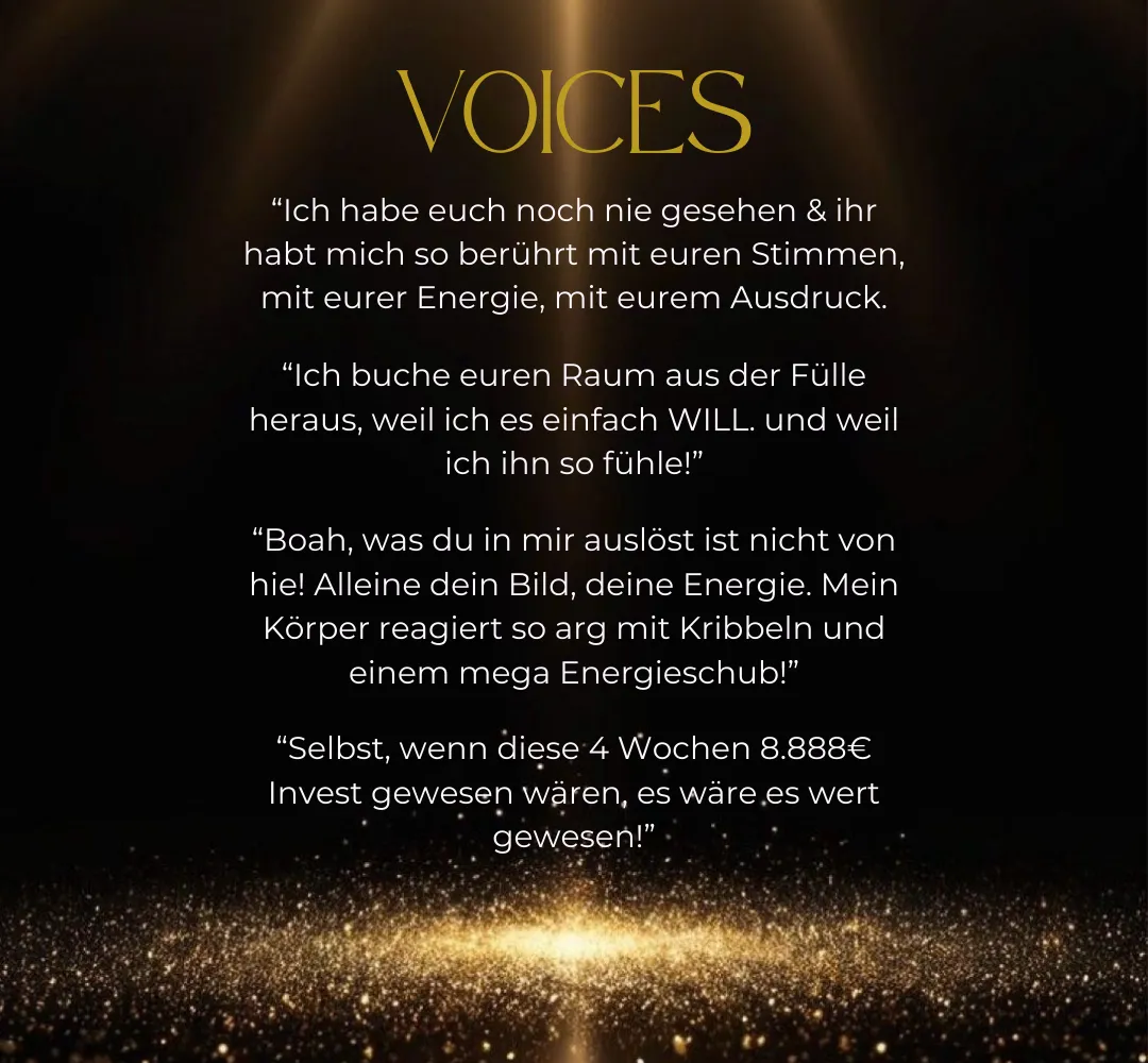 Es gibt keine Garantie auf Ergebnisse oder Einnahmen, die mit unseren Programmen, Kursen, Masterclasses, Coachings oder Strategien verbunden sind. Alle Verkäufe sind endgültig, es gibt keine Rückerstattungen. Wenn du dich für eine Ratenzahlung entscheidest, bist du verpflichtet, den vollen Betrag zu zahlen, unabhängig davon, ob du das Programm fortsetzt oder nicht.